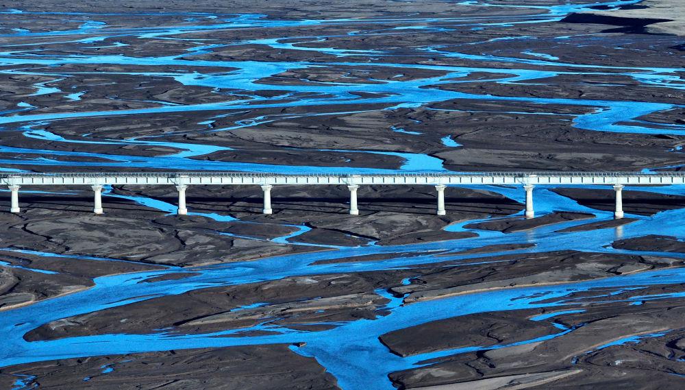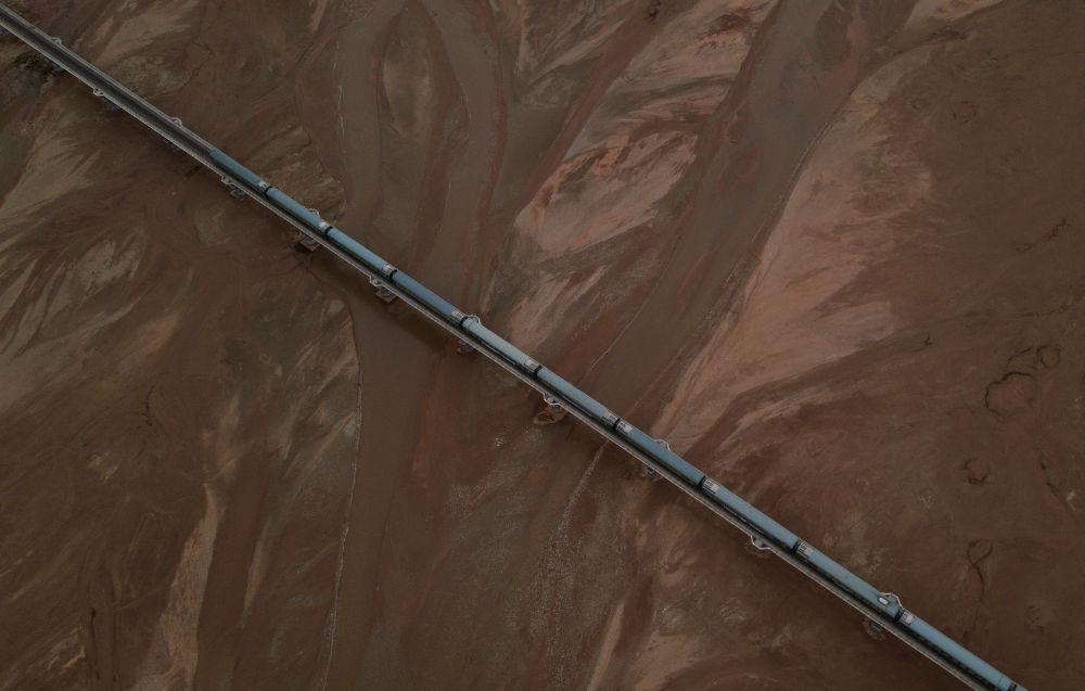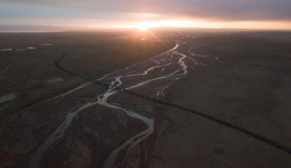 6月16日,一列火車經(jīng)過長(zhǎng)江源地區(qū)的楚瑪爾河。