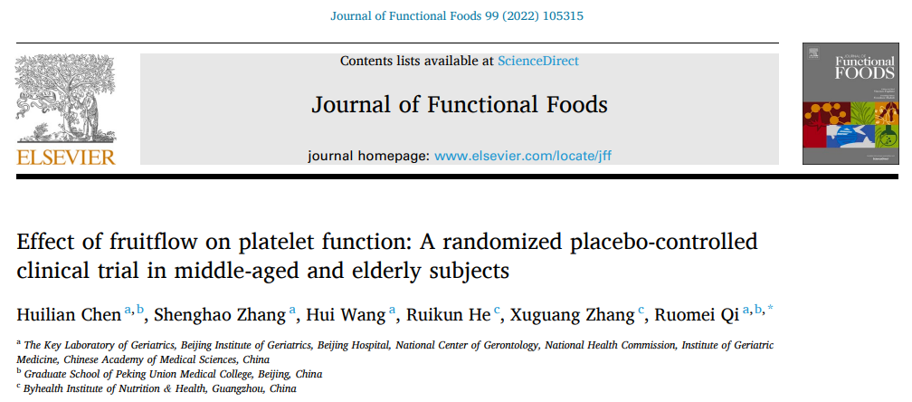 此次湯臣倍健申報(bào)的新絡(luò)素片,以Fruitflow®(輕絡(luò)素)針對中國人群血流健康影響的臨床驗(yàn)證及相關(guān)機(jī)制研究,填補(bǔ)了國內(nèi)該功能評價(jià)體系的空白,研究成果相繼發(fā)表在《JournalofFunctionalFoods》《FrontiersinNutrition》等國際權(quán)威雜志。