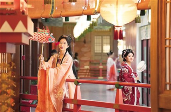 在遍布名勝古跡的西安市內(nèi),還有一座“平行時空里的長安”。走進長安十二時辰主題街區(qū),游客不僅可以身著唐代服飾穿行在市井街區(qū),與游街花魁來個親密接觸,還能手握“開元通寶”代幣,到酒肆里買壺好酒,觀看歌舞。
