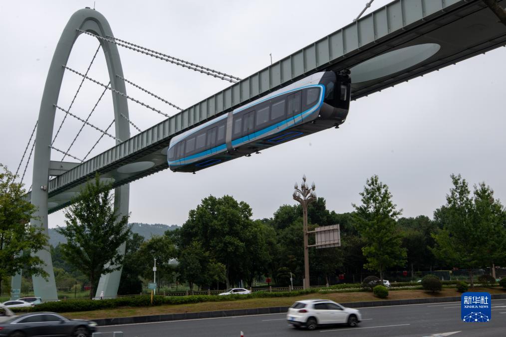 9月26日,空軌列車在運行中。新華社發(fā)(杜子璇 攝)