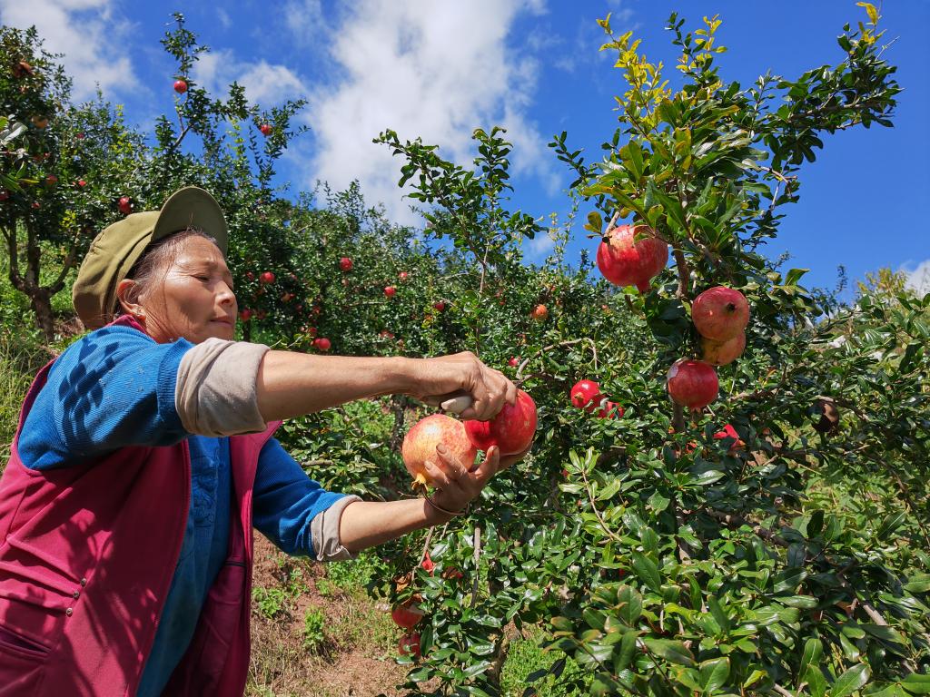 9月19日,會(huì)理市彰冠鎮(zhèn)魁閣村,石榴采摘場景。新華社記者江毅 攝