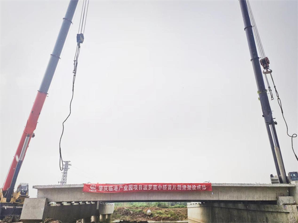 近日,肇慶新區(qū)臨港產(chǎn)業(yè)園波羅竇中橋首片預(yù)制箱梁架設(shè)完成,標(biāo)志中鐵一局一公司承建的肇慶臨港產(chǎn)業(yè)園項目施工生產(chǎn)按下“快進鍵”。