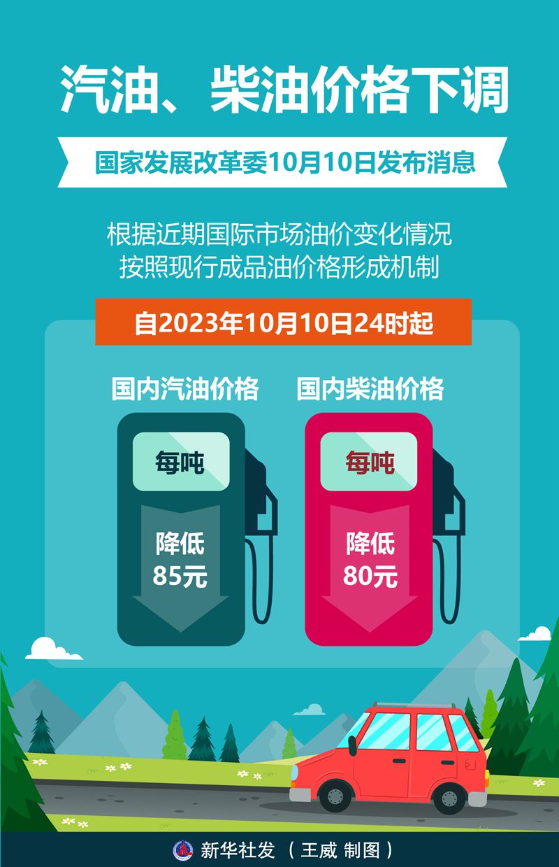 10月10日24時,新一輪成品油調(diào)價窗口開啟。國家發(fā)展改革委發(fā)布消息,根據(jù)近期國際市場油價變化情況,按照現(xiàn)行成品油價格形成機制,自2023年10月10日24時起,國內(nèi)汽油、柴油價格每噸分別降低85元和80元。