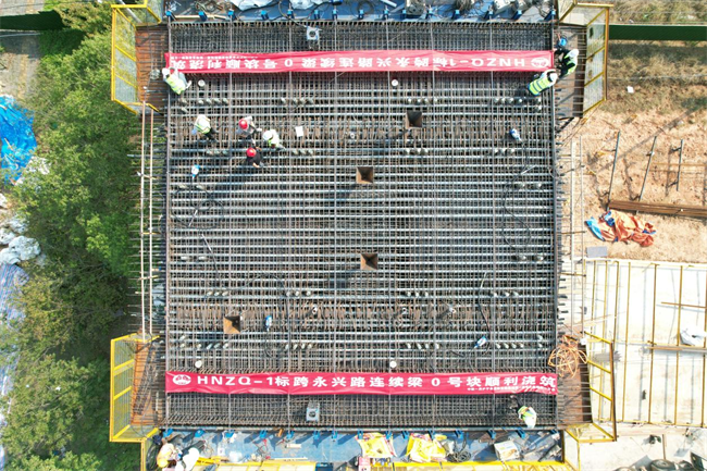 跨京滬高鐵立交特大橋位于滁河西岸,安徽省滁州市南譙區(qū)烏衣鎮(zhèn)和全椒縣十字鎮(zhèn)境內(nèi),總長17.5公里。其中跨永興路連續(xù)梁為三跨變截面箱梁,跨越滁州市南讓區(qū)永興路,橋跨位置對應(yīng)跨京滬高鐵立交特大橋180#墩至183#墩,全長177.7米,0#塊長度達12米。由于0#段內(nèi)預(yù)應(yīng)力筋布置復(fù)雜、非預(yù)應(yīng)力筋密集,要求一次澆筑成型,施工難度大。為保證施工質(zhì)量,此次澆筑總體以“統(tǒng)籌規(guī)劃、科學(xué)組織、重點先行、分段展開、均衡生產(chǎn)、標(biāo)準(zhǔn)化作業(yè)、有序推進”為原則展開施工。