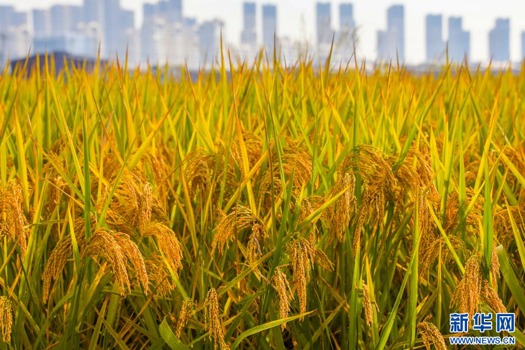 稻田里,沉甸甸的稻穗掛滿枝頭。