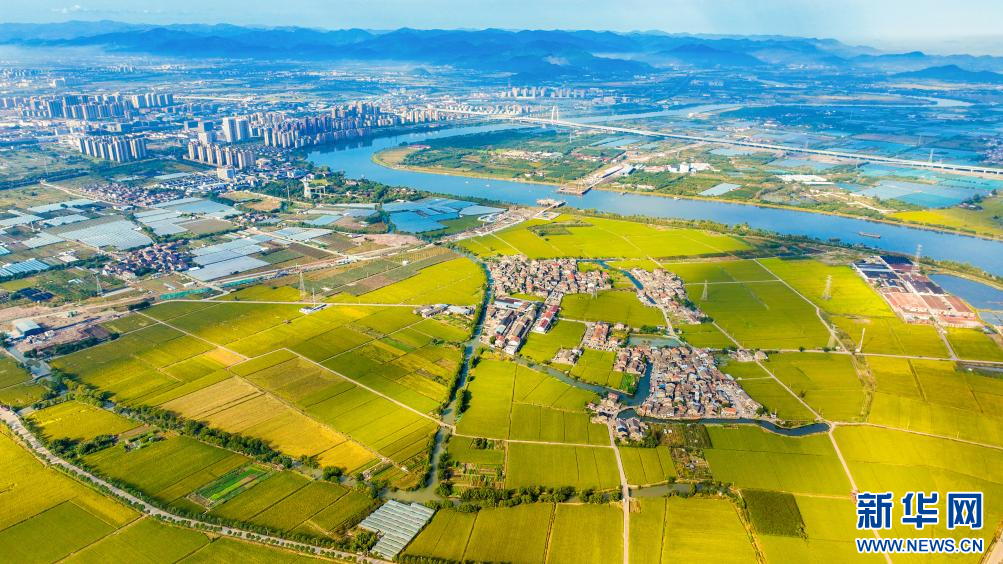 近日,浙江省寧波市海曙區(qū)高橋鎮(zhèn)望江村1280畝晚稻進(jìn)入成熟期。俯瞰鄉(xiāng)村,村落鑲嵌在金黃色的稻田中,秋日“豐”景,美不勝收。