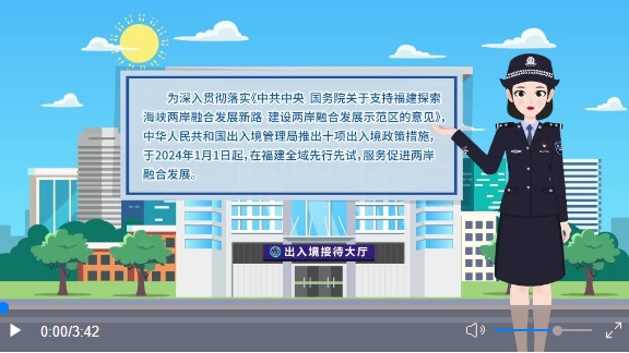 在便利臺胞往來方面,實行臺灣居民來往大陸通行證(以下簡稱“臺胞證”)“網(wǎng)上辦”“口岸辦”“集中辦”,辦證方式更加便捷,辦證渠道更加豐富,臺胞來閩實現(xiàn)“想來即來”;推動在廈門設立出入境證件制作中心,廈金、福馬“同城生活圈”人員辦理出入境證件時限由7個工作日縮短至5個工作日。