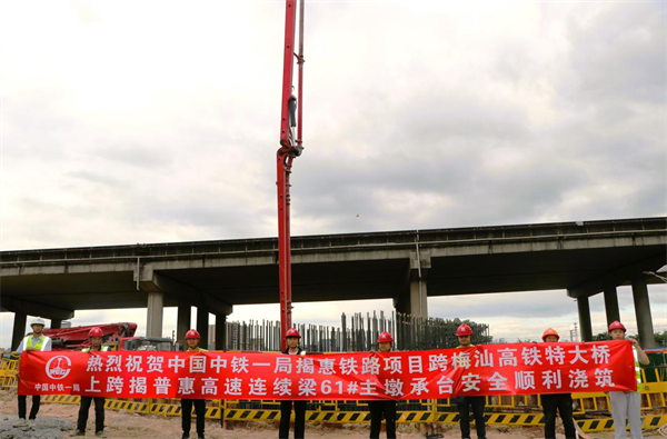 近日,中鐵一局一公司承建的揭惠鐵路站前工程2標項目迎來新進展,全線控制性工程跨梅汕高鐵特大橋上跨揭普惠高速(83+152+83)m連續(xù)梁61#主墩承臺暨項目首個單體積最大承臺安全順利澆筑完成,標志著該橋梁工程取得了階段性進展,為后續(xù)連續(xù)梁施工奠定了基礎。