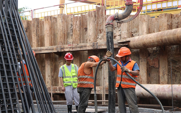 為確保本次混凝土澆筑施工安全順利完成,項目部集中組織現(xiàn)場管理人員和協(xié)作隊伍,對施工方案進行詳細討論、學習,總結(jié)前期施工經(jīng)驗,完善各工序銜接,對人員配置及分工進行精細化部署,細化節(jié)點目標,明確責任。澆筑過程中,嚴格控制混凝土入模速度,緊盯混凝土振搗質(zhì)量,專人盯控,確保了61#主墩承臺的安全順利澆筑。