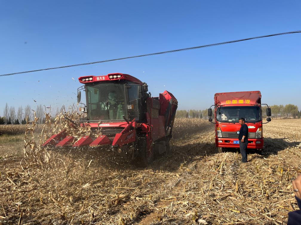 壽陽(yáng)縣景尚鄉(xiāng)正在進(jìn)行玉米機(jī)收。新華社記者 王勁玉 攝