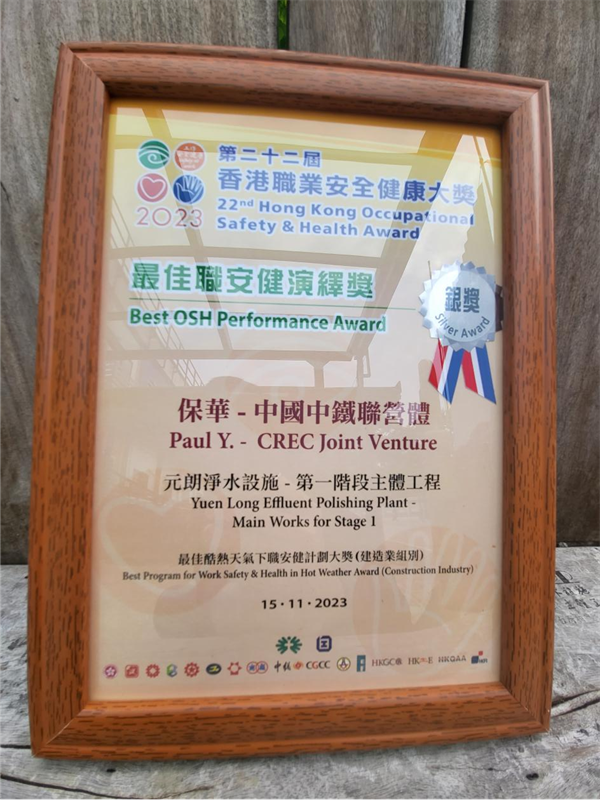 “最佳酷熱天氣職安健計(jì)劃大獎(jiǎng)——金獎(jiǎng)”