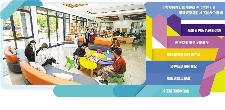 《完整居住社區(qū)建設(shè)標準(試行)》明確了完整居住社區(qū)的6個目標,包括基本公共服務(wù)設(shè)施完善、便民商業(yè)服務(wù)設(shè)施健全、市政配套基礎(chǔ)設(shè)施完備、公共活動空間充足、物業(yè)管理全覆蓋以及社區(qū)管理機制健全,每個目標包含相應(yīng)的建設(shè)內(nèi)容,共計20項。