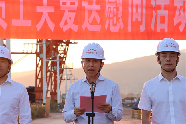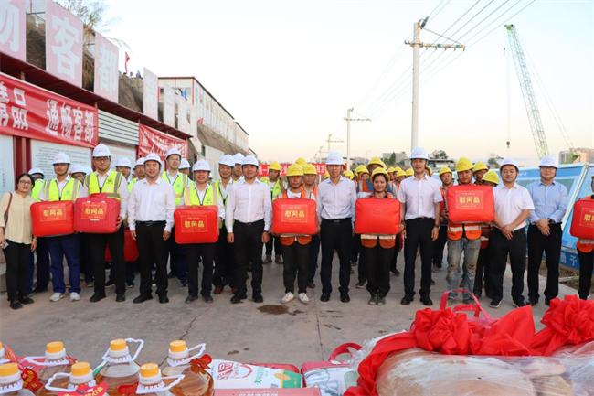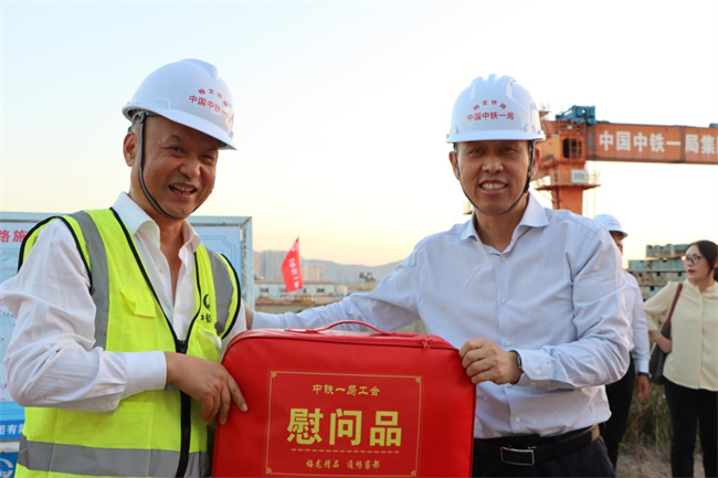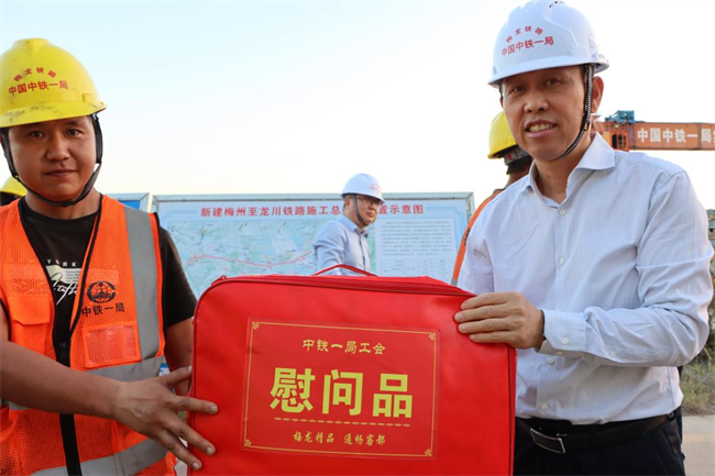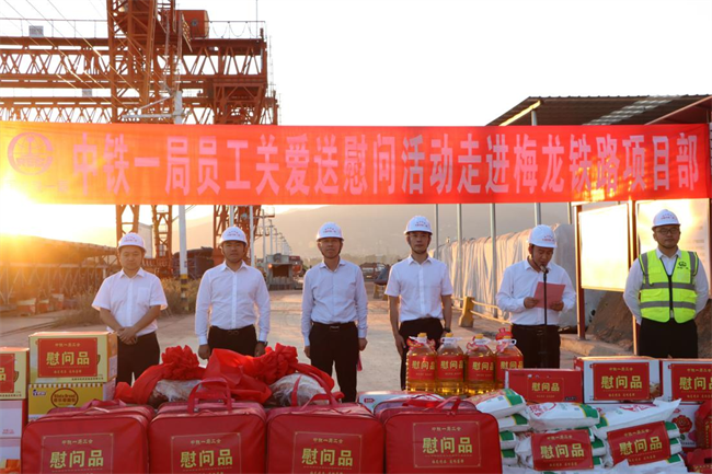 年終歲寒,元旦將至。為深入貫徹落實(shí)黨的二十大和中國(guó)工會(huì)十八大精神,把黨的關(guān)懷和公司工會(huì)的溫暖及時(shí)送到廣大職工群眾的心坎上。12月11日下午,中鐵一局“員工關(guān)愛(ài)送慰問(wèn)”活動(dòng)走進(jìn)中鐵一局梅龍鐵路項(xiàng)目施工現(xiàn)場(chǎng)。中鐵一局黨委副書(shū)記、工會(huì)主席王新年,一公司總經(jīng)理韓勝,副總經(jīng)理、工會(huì)主席應(yīng)曉峰等共同為項(xiàng)目一線參建職工送去暖心關(guān)愛(ài)。