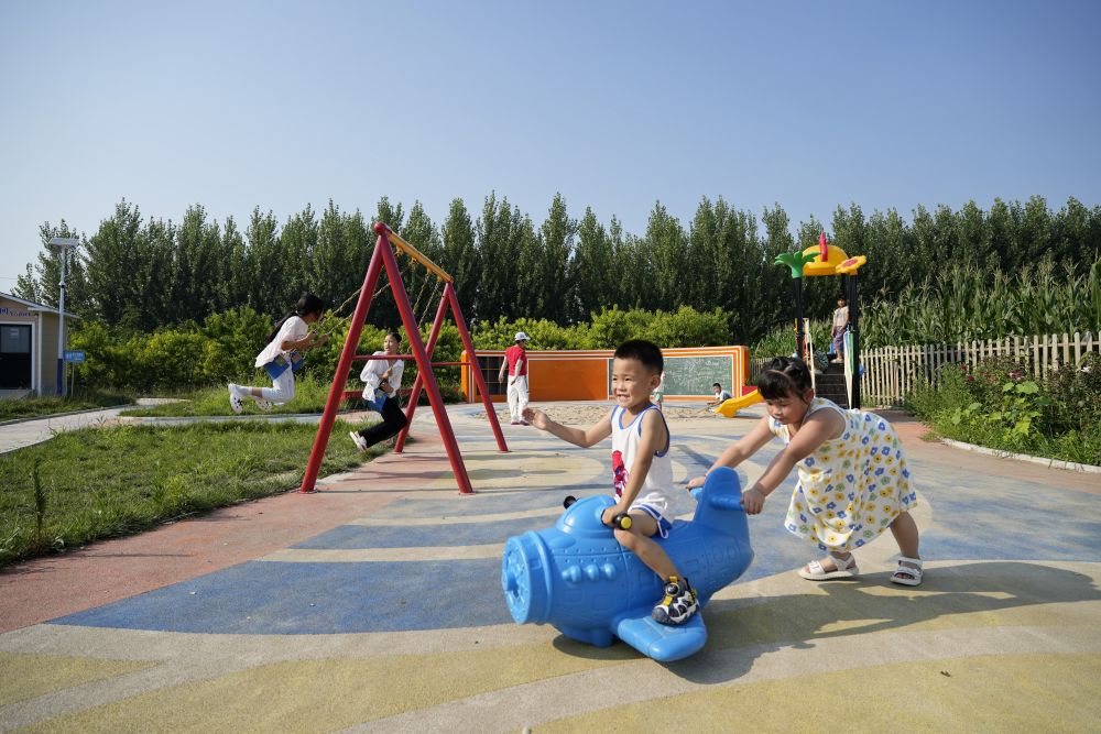 ↑孩子們在河北省唐山市豐南區(qū)趙新莊村一處游園內玩耍(7月19日攝)。豐南區(qū)因地制宜實施美麗鄉(xiāng)村提升工程,通過改造農村閑置破舊房屋、清理溝渠坑塘等措施,300余個行政村建起鄉(xiāng)村游園。