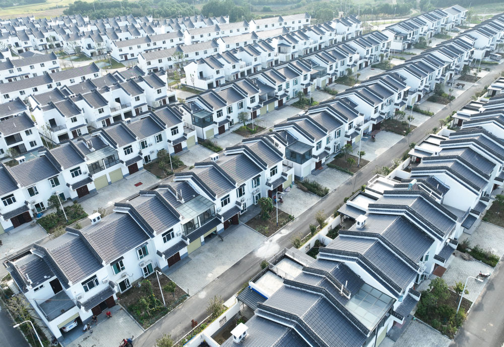↑建設完工的湖北省沙洋縣沈集鎮(zhèn)帥店新社區(qū)(9月7日攝,無人機照片)。沙洋縣沈集鎮(zhèn)全域國土綜合整治項目著眼于耕地碎片化、空間布局無序化、資源利用低效化、生態(tài)質量退化等問題,打造集約高效的生產空間、宜居適度的生活空間、山清水秀的生態(tài)空間。