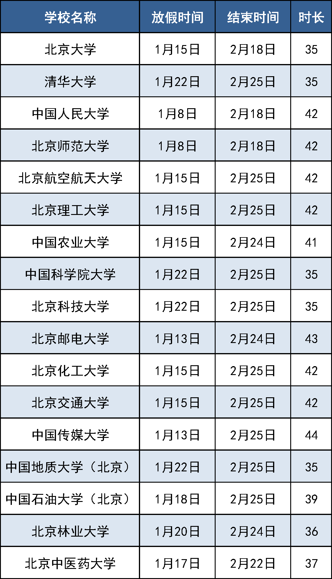寒假在即,北京各大高校紛紛公布2024年寒假放假安排。北京大學(xué)、清華大學(xué)、中國(guó)人民大學(xué)等近40所高校公布的放假安排中,最長(zhǎng)的假期達(dá)48天。