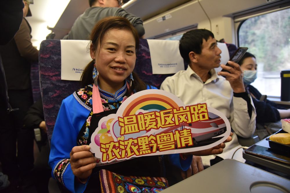 2月18日下午,隨著D1859次列車緩緩駛入廣州南站,包括石品芳在內的640名貴州黔南州務工人員,開啟了新一年的奮斗歷程。