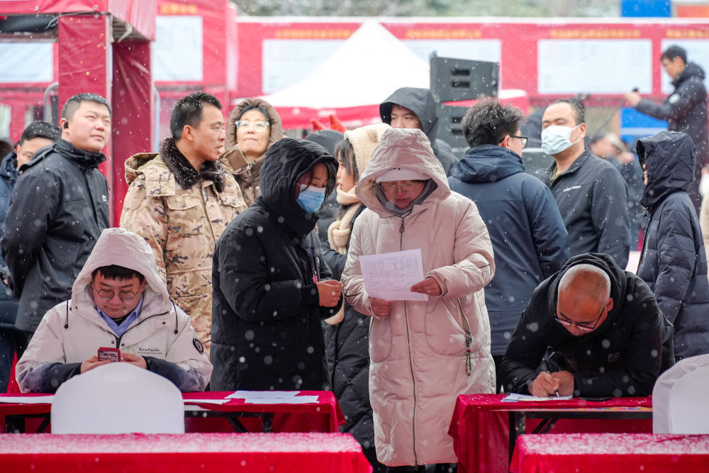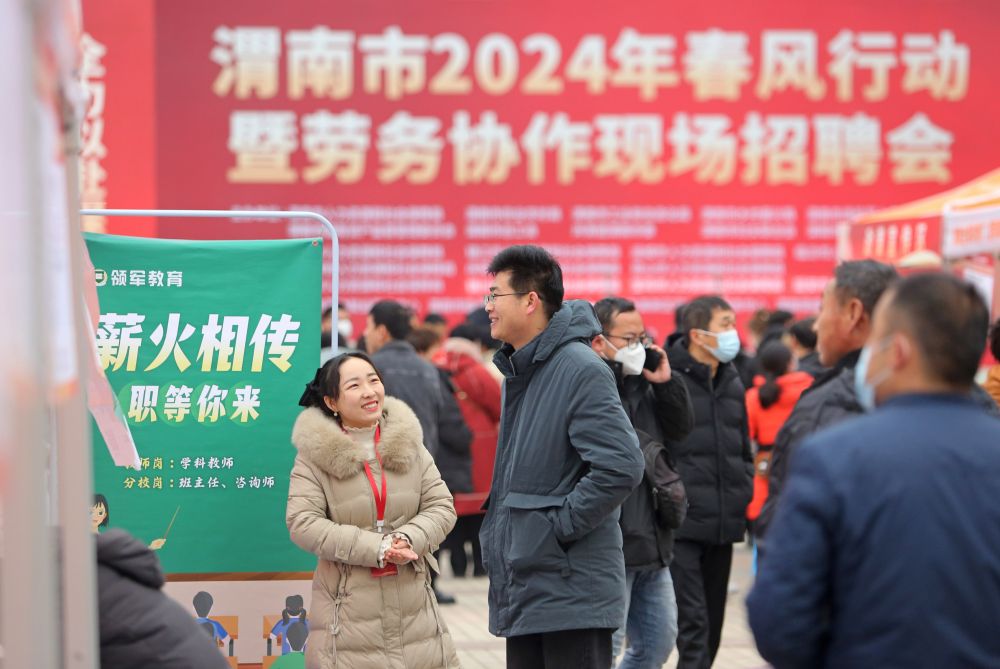 2月19日,求職者在陜西省渭南市2024年“春風行動”暨勞務協(xié)作現(xiàn)場招聘會了解企業(yè)招聘情況。新華社發(fā)(崔正博攝)