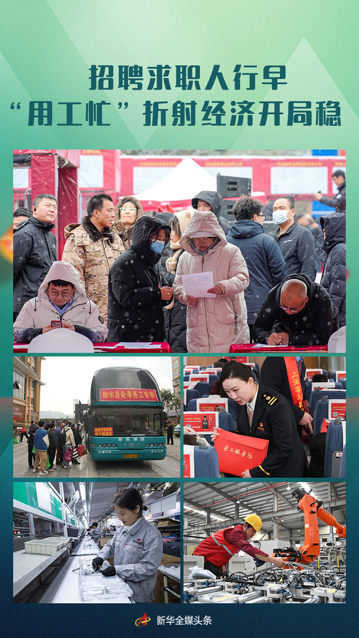 “用工忙”折射開局穩(wěn),釋放出經濟運行回穩(wěn)向好的信心。從跨省招工、專車專列接人返崗,到密集招聘、發(fā)布穩(wěn)企拓崗新政策……各地搶抓勞動者流動及企業(yè)復工關鍵期,全力保用工、穩(wěn)就業(yè),努力跑好龍年穩(wěn)經濟第一棒。