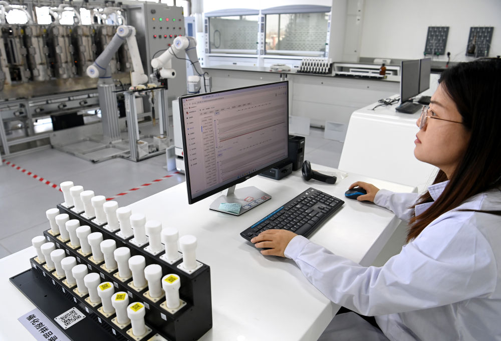 2024年2月28日,工作人員黨小梅在陜西榆林中科潔凈能源創(chuàng)新研究院基于人工智能的高通量催化反應(yīng)研究平臺實驗室進行實驗。新華社記者 鄒競一 攝