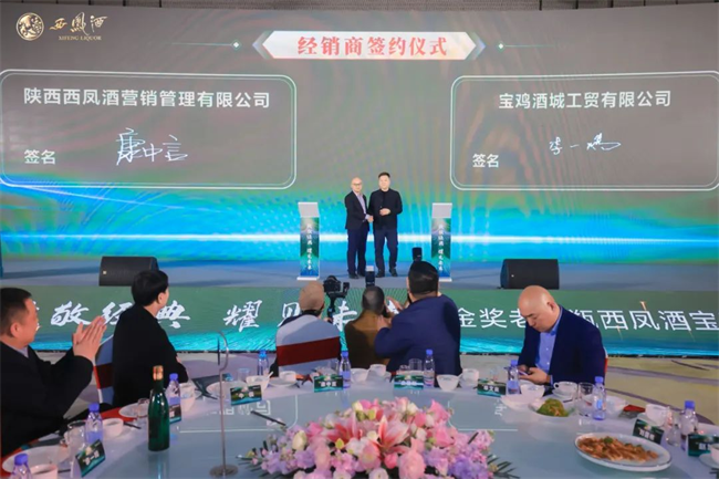 會期,寶雞企業(yè)及企業(yè)家聯(lián)合會會長毛躍利,西鳳集團(tuán)黨委副書記、工會主席、營銷公司黨總支書記郭拴新,股份公司副總經(jīng)理周艷花,寶雞市青年企業(yè)家協(xié)會會長翟紅星,寶雞泓錦福華商貿(mào)有限公司總經(jīng)理張寶梅,寶雞酒城工貿(mào)有限公司總經(jīng)理李一鳴共同為金獎老綠瓶西鳳酒揭幕,宣告金獎老綠瓶西鳳酒在寶雞正式發(fā)布!