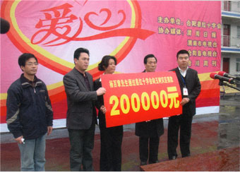 楊百章通過(guò)合陽(yáng)縣紅十字會(huì)向玉樹(shù)災(zāi)區(qū)捐款20萬(wàn)元