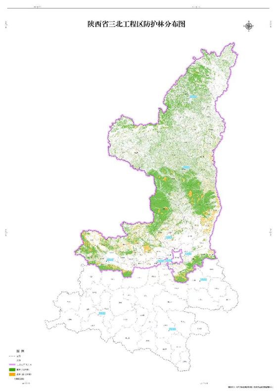 “三北工程”是“防護(hù)林”工程,也是中國(guó)生態(tài)文明建設(shè)的重要標(biāo)志性工程。1978年11月25日,國(guó)務(wù)院批準(zhǔn)實(shí)施三北防護(hù)林體系建設(shè)工程(簡(jiǎn)稱(chēng)“三北工程”),規(guī)劃期由1978年到2050年,規(guī)劃區(qū)總面積65億畝。“三北工程”是人類(lèi)最具雄心的生態(tài)工程。陜西是“三北工程”之省,秦嶺以北的黃河流域,包括秦嶺北麓、關(guān)中平原、渭北旱塬、丘陵溝壑、毛烏素沙地,皆是“三北工程”區(qū)。陜西“三北工程”區(qū)總面積1.83億畝,占全省土地面積的59.29%、占全國(guó)“三北工程”區(qū)面積的2.8%。